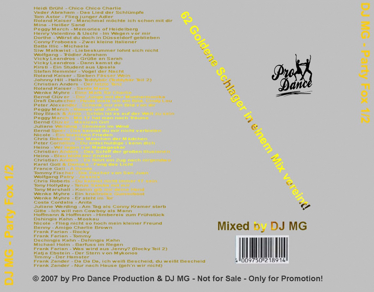 Der erste Mix unter dem Name DJ MG - Das goldene Schlagerarchiv. Eine Erinnerung an die deutschen Schlagerklassiker. Party Fox Volume 0.5.
